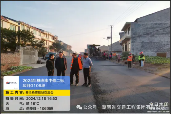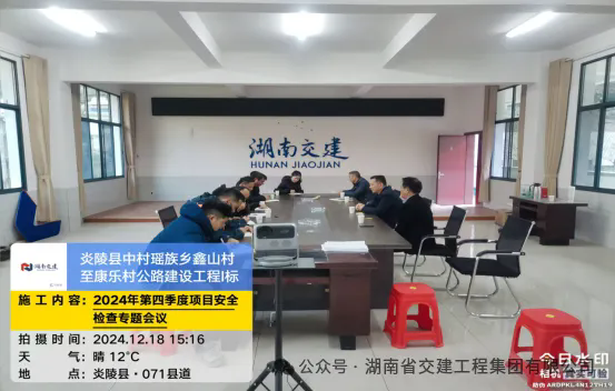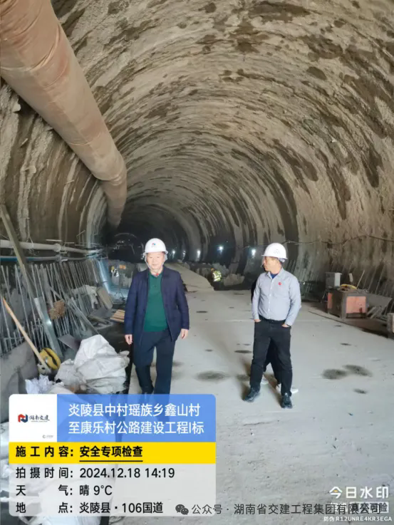 2024年12月18日,由公司监事长欧寿康、副总经理(分管安全)郭建文、质量安全部副部长周志勇组成的安全工作小组,对炎陵县中村瑶族乡鑫山村至康乐村公路建设工程1标、2024年株洲市普通国省干线公路中修项目(第二标段)等项目进行了安全检查,重点排查机械设备、隧道施工通风设施、施工交叉作业、高边坡施工、交通管制等方面的安全隐患。